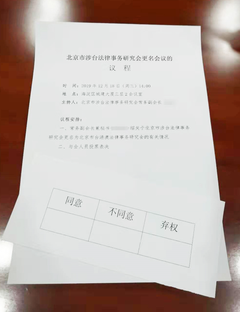 2019年12月18日,北京市法学会涉台法律事务研究会在城建大厦召开全体会员大会,会议的主要议程为“北京市法学会涉台法律事务研究会”更名为“北京市法学会台港澳法律事务研究会”。北京市东友律师事务所高级合伙人刘欣慰律师作为委员参与了全程会议。